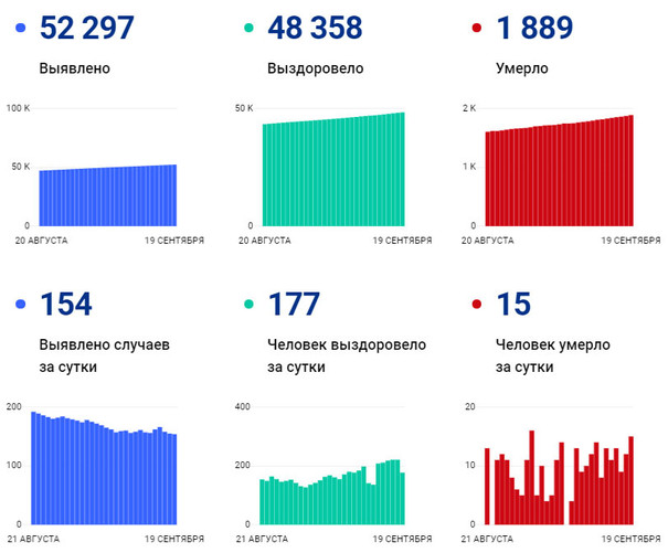 Под данным Роспотребнадзора на 19 сентября, за последние сутки в регионе зафиксировано еще 15 смертей от COVID-19. Всего же за пандемию погибло 1889 жителей Владимирской области. Смертность на 100000 жителей составляет 137 человек.