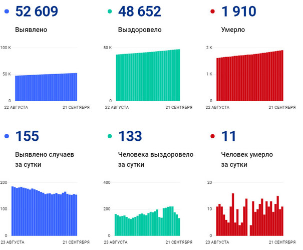 Под данным Роспотребнадзора на 21 сентября, за последние сутки в регионе зафиксировано еще 11 смертей от COVID-19. Всего же за пандемию погибло 1910 жителей Владимирской области. Смертность на 100000 жителей составляет 138,6 человек.