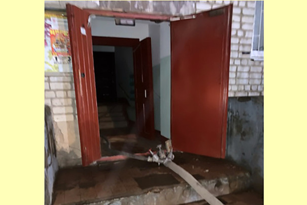 На момент прибытия пожарных в подъезде дома наблюдалось задымление.