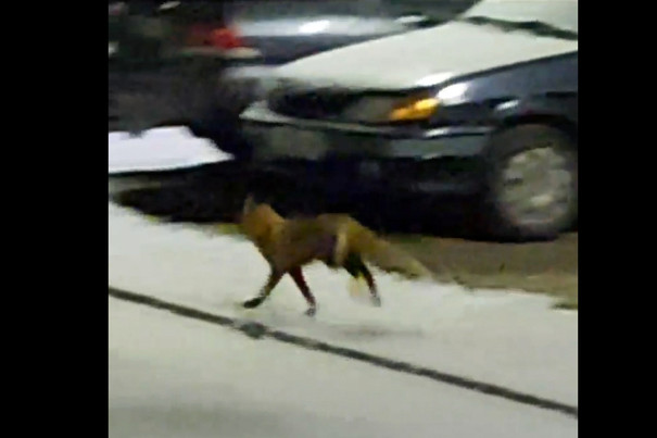 Дикое животное резво бегает около машин, припаркованных во дворе дома №9 по улице Школьной города Камешково. Затем она скрывается из вида прямиком по проезжей части.