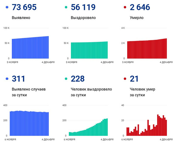 По данным Роспотребнадзора на 4 декабря, за последние сутки в регионе зафиксирована еще 21 смерть от COVID-19. Всего же за пандемию погибли 2646 жителей Владимирской области. Смертность на 100000 жителей составляет 192,0 человека.