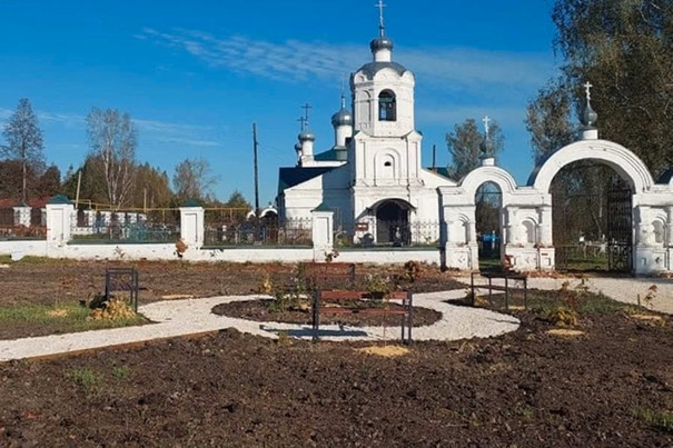 В рамках данного проекта были проведены работы по расчистке, выравниванию земельного участка, обустройству подъезда к храму и парковочного места, обустройству клумб, установке лавочек и посадке цветов и декоративных кустарников.