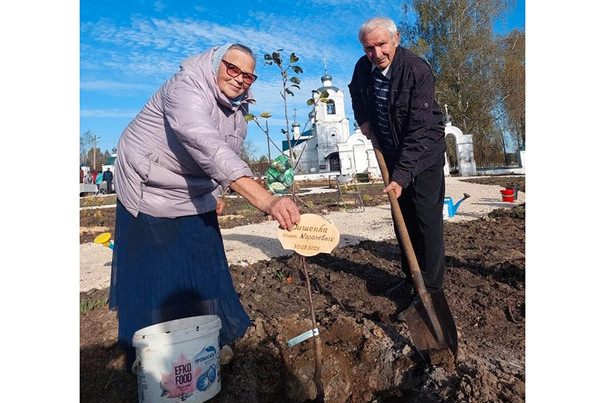 На мероприятии также была проведена акция «Семейный сад». Семьи жителей деревни и прихожан храма Троицы Живоначальной на обустроенной территории возле храма высадили саженцы вишни.