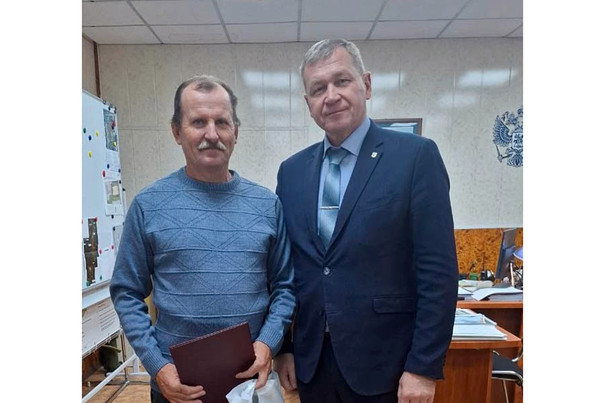 Временно исполняющий обязанности главы администрации района Анатолий Курганский вручил Почетную грамоту района Егорову Александру Геннадьевичу, машинисту автогрейдера 6-го разряда муниципального учреждения «Управление жилищно-коммунального хозяйства» Камешковского района.