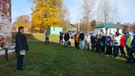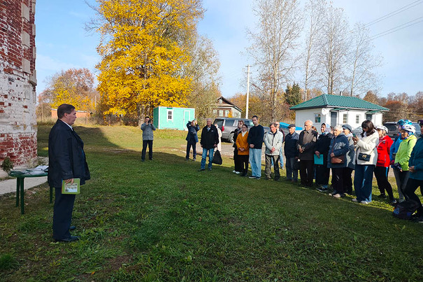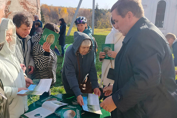 Несмотря на то, что метеопрогноз еще и за пару дней предсказывал на субботу холодный, хмурый дождливый день, небесная канцелярия сменила гнев на милость, и презентация в Успенском погосте прошла под лазурным небом при солнечном сиянии и небывалой для начала второй декады октября температуре в плюс 16 градусов. Поистине на благое дело и погода благодатная!