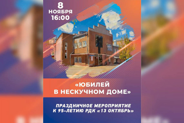 8 ноября в 16:00 в Большом зале Камешковского районного Дома культуры «13 Октябрь» состоится праздничное мероприятие, посвященное 95-летию нашего любимого дома культуры!