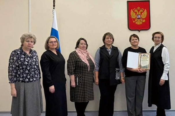 Председатель Совета народных депутатов Камешковского муниципального округа Надежда Игонина вручила Почетную грамоту Камешковского района Марине Владимировне Родионовой, педагогу-библиотекарю школы № 3 города Камешково.