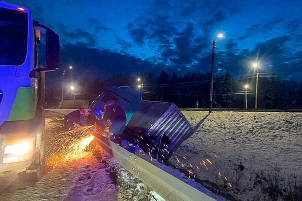По прибытию на место спасатели срезали отбойник с помощью бензореза, чтобы вытащить пострадавший автомобиль. Пострадавших в ДТП нет.