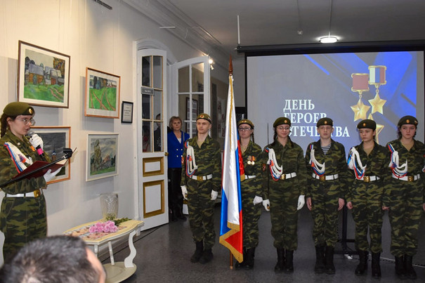 В районном историко-краеведческом музее началась праздничная программа «Во славу Отечества». На сцене выступили ансамбль народной песни «Семечки» и театральная студия с инсценировкой о войне. Гости вспомнили героев разных поколений, объединённых любовью к Родине и готовностью её защищать. Ветеранам, военнослужащим и ликвидаторам вручили цветы за их подвиг.