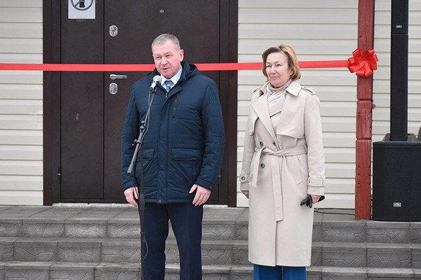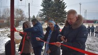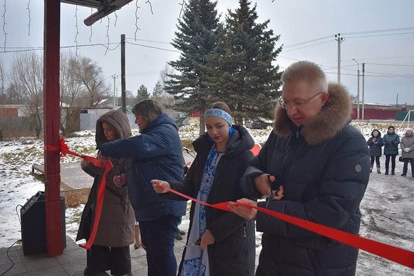Право перерезать ленту предоставили Вячеславу Картухину, Елене Ерлыкиной, а также участникам художественной самодеятельности местного дома культуры.