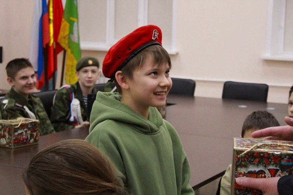 В знак признательности и с наилучшими пожеланиями каждый юнармеец получил из рук главы округа сладкий новогодний подарок .