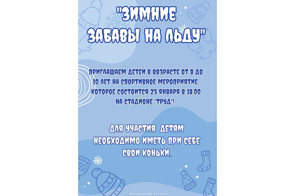 В городе Камешково детей в возрасте от 8 до 10 лет приглашают на спортивное мероприятие «Зимние забавы на льду», которое состоится 23 января в 18:00 на стадионе «Труд».