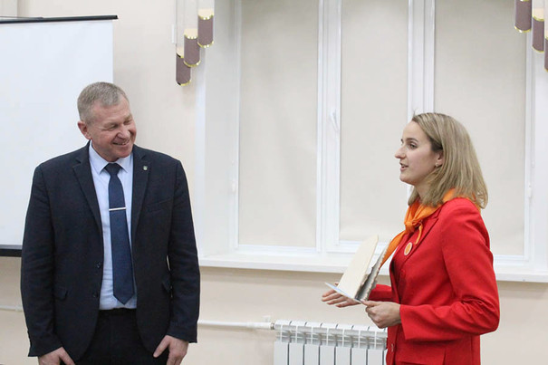 Директор Центра творчества «Апельсин» Дарья Радченко также присоединилась к поздравлениям. Вместе с ребятами они создали уникальный подарок и вручили его Анатолию Захаровичу.
