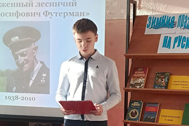 Доклад ученика Новкинской школы Ивана Хорева назывался «Труд как призвание: заслуженный лесничий Юлий Иосифович Футерман». Ваня рассказал о славном трудовом пути заслуженного лесничего, одного из руководителей Новкинского лесничества Ю. С. Футермана, о его вкладе в создание детского объединения.