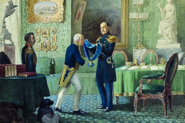 Император Николай I награждает Сперанского за составление свода законов. Картина А. Кившенко