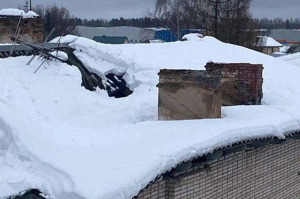 В городе Камешково на улице Комсомольская площадь на доме № 6 из-за большого скопления мокрого снега произошло частичное обрушение шиферной крыши.