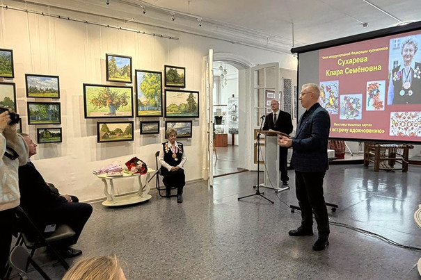Открыл выставку директор Камешковского музея Дмитрий Юрьевич Страхов, представляя автора выставочных работ. Он рассказал о биографии Клары Сухаревой, её уникальном творчестве. Мастерицу приветствовали и поздравили Вячеслав Картухин, Анатолий Курганский, Элла Фролова.