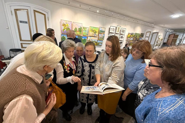 Клара Семёновна лично пообщалась с посетителями выставки, где рассказывала о том, как создавались картины, о техниках и видах вышивки, об участии её в выставках, о её наградах и достижениях.